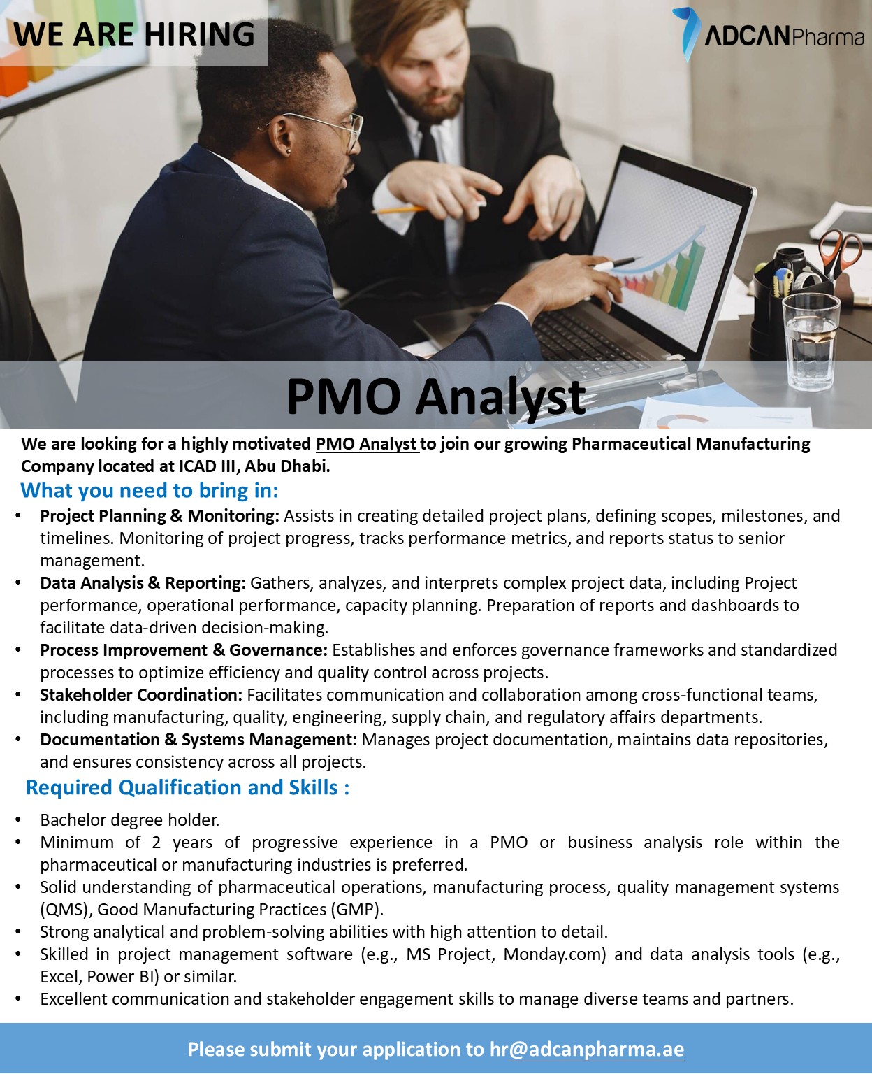 Published in: PMO Analyst Author ADCAN Pharma Published on: January 13, 2026 Job Category: PMO Job Type: Full Time Job Location: Abu Dhabi Apply for this position Full Name *Email *Phone *Cover Letter *Upload CV/Resume *Allowed Type(s): .pdf, .doc, .docxBy using this form you agree with the storage and handling of your data by this website. *